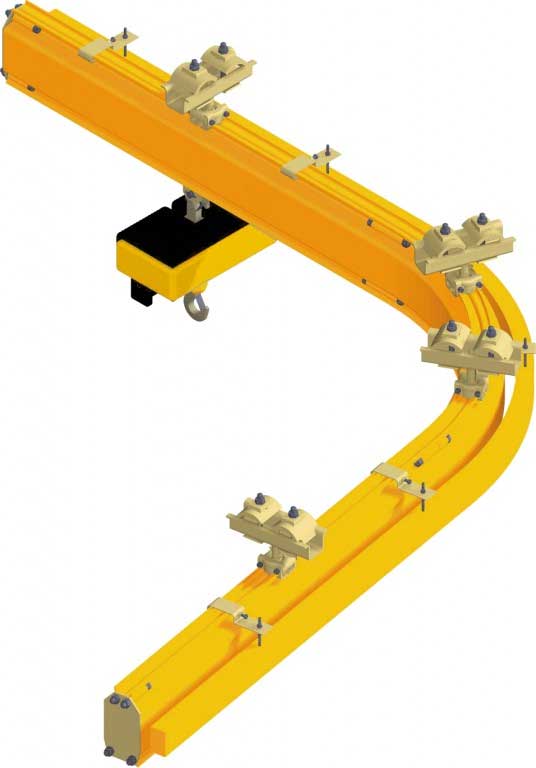 with standard suspensions. Hoist track with one curve can be equipped with flat