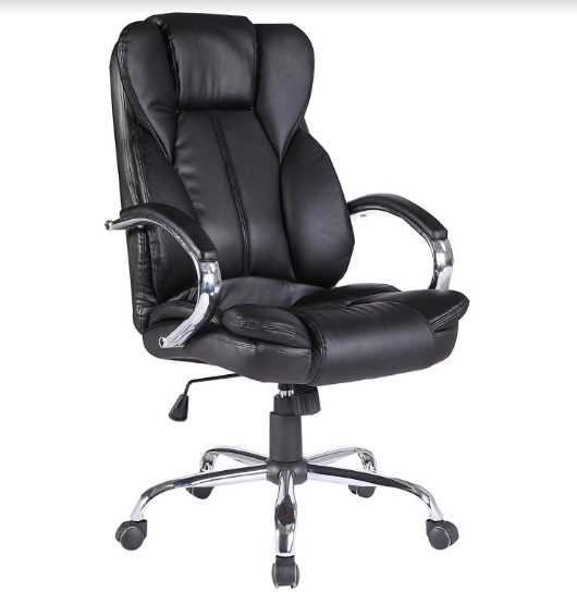 High Back Executive Chair, Cushioned seat & back, cushioned PP armrest, torsion-bar mechanism, gas-lift mechanism, chrome plated metal base and leatherette upholstery