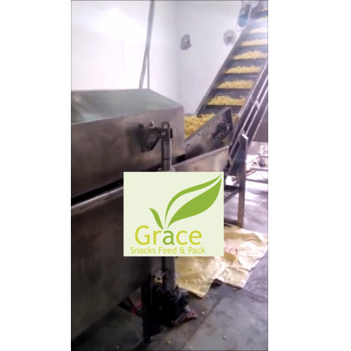 Automatic Frying Systems, Automatic Snacks Frying Machine and Automatic Continuous Frying Systems available in different models ranging from 100 kg per hr to 1000 kg per hr, Grace Food Processing & Packaging Machinery offers is a direct fired system as well Heat exchanger fired system, Our machine can use diesel/LPG/Natural gas as fuel, The product is fed from one end and it comes out fried from the other end by a conveyor system.